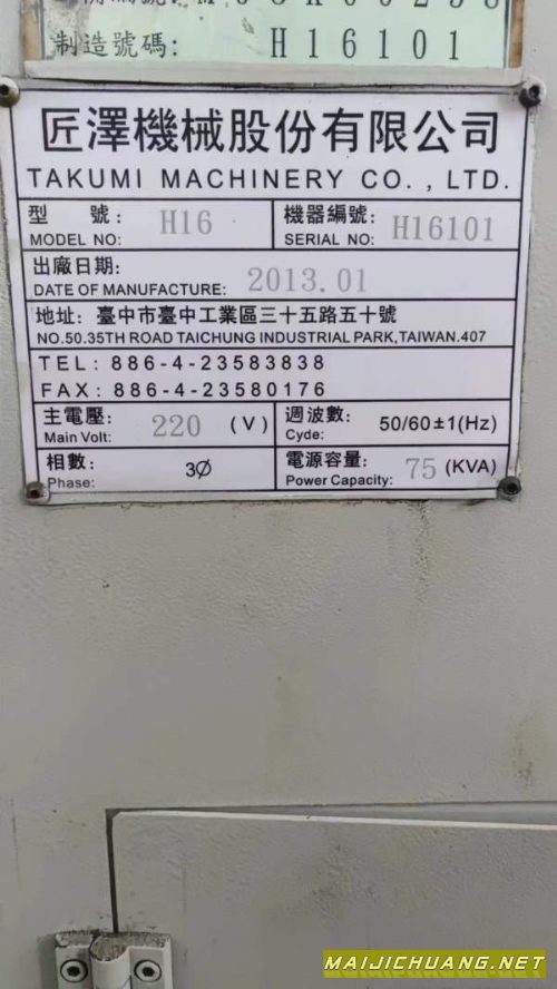 台湾匠泽H16龙门结构加工中心,原值二百六十多万一台,带三轴光栅尺,带主轴中心出水,发那科18i-MB高配系统,阿尔法电机驱动,BT50大主轴6000转,20把隐藏刀库,三轴滚柱线轨,工作台1900*1300mm,三轴行程X:1600Y:1300Z:700mm,带主轴油冷机,带光栅尺,带主轴中心出水,带排削器 信息编号:S125035 |